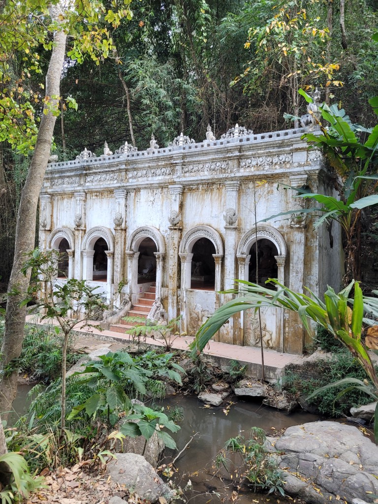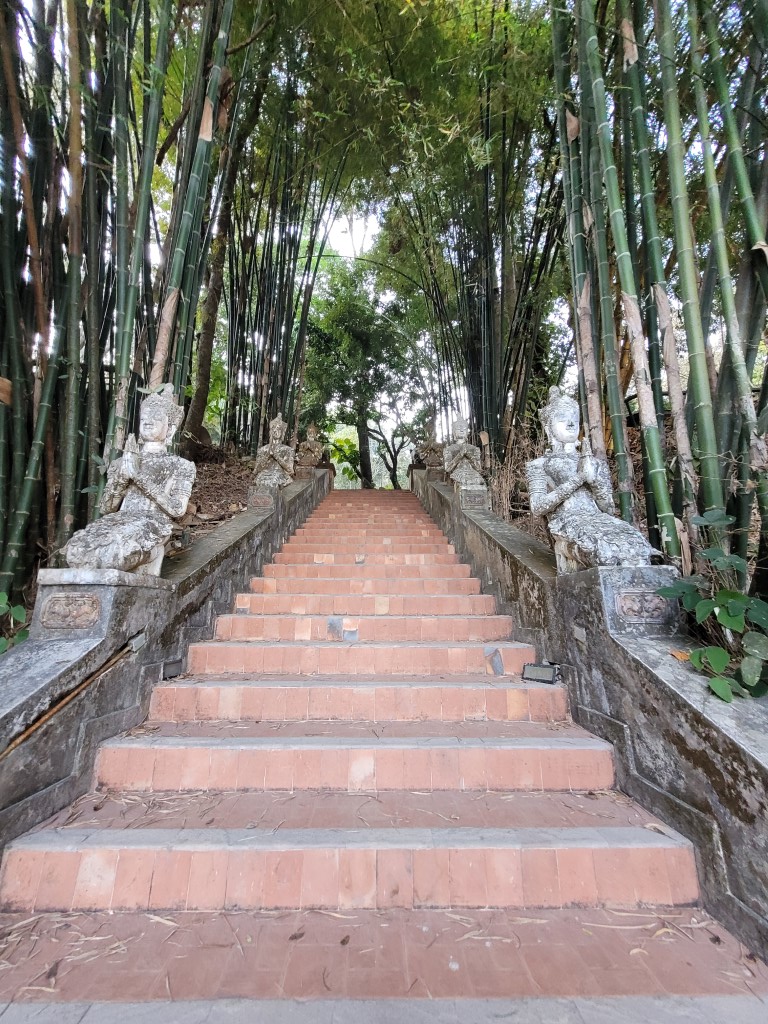 Am Nachmittag wollten wir uns mal mehr bewegen und hatten die Idee, wandern zu gehen. Am Rande der Stadt fangen die Berge an, wo unser Ziel lag. Das Ziel, den Tempel Wat Pha Lat, hatten wir uns über Maps herausgesucht, weil wir gesehen haben, dass es rundherum Wege und eine Straße gibt. Zunächst mussten wir in die Richtung kommen. Wir wissen, dass eine Fahrt zum Zoo zwischen 120 und 150 Baht kosten soll. An der Hauptstraße wurden wir direkt von einem TukTuk-Fahrer angesprochen, welcher erstmal 300 Baht für die Fahrt zum Zoo verlangt hat. Wir haben ihm 150 geboten, die er erstmal abgelent hat, er ist zwar mit dem Preis herunter gegangen, aber unter 200 wollte er erstmal nicht. Ich habe beschlossen mit einem roten Taxibus zu fahren, die sind günstiger. Nachdem wir schon die Straßenseite gewechselt hatten kam der TukTukfahrer herum und hat uns für 150 zum Zoo gebracht. Am Zoo war der Fahrer völlig verdutzt, dass wir nicht mit den Kindern hinein möchten, sodern in einen Taxibus umsteigen wollten, um dann in den Bergen wandern zu gehen.