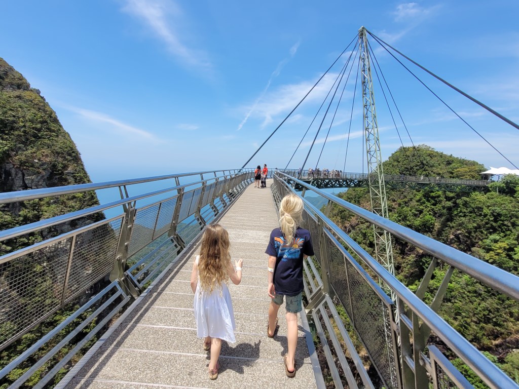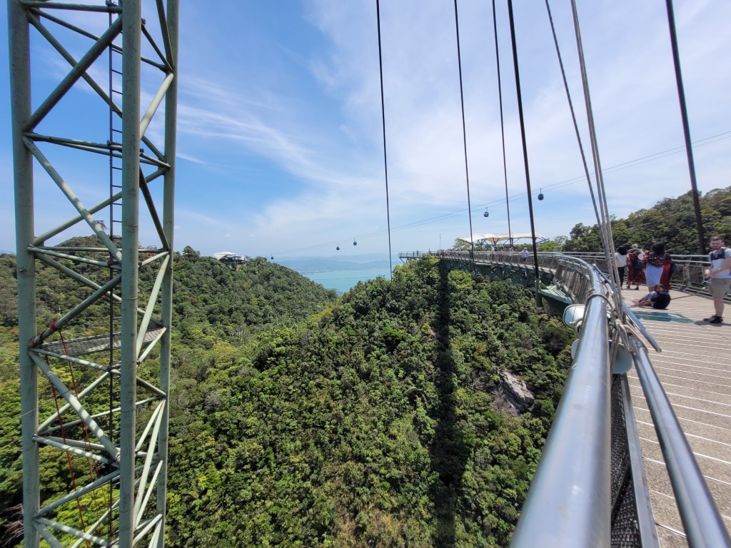 Die Cablecar gehört zu den Hauptattraktionen von Langkawi. Auch wenn die Fotos idyllisch aussehen, es sind Massen unterwegs gewesen. Wir mussten ewig anstehen, zunächst für die Tickets, danach für die Gondel. Getränke durfte man nicht mitnehmen, auch kein Wasser. Das Anstehen bei der Hitze mit Kind auf dem Arm für mehr als sechzig Minuten war nicht so dolle. Oben angekommen musste man sich nochmal an einen Ticketstand begeben, um auch auf die Hängebrücke zu dürfen. Immerhin konnte man oben Wasser kaufen (scheinbar bei Vollmond mit Goldfilter abgefüllt). Abgesehen von dem eher unfreundlichen Personal und den Preisen hatte man von verschiedenen Plattformen immer wieder eine grandiose Aussicht. Wir haben eine ganze Weile oben verbracht, bevor wir auch im 3D-Artmuseum viel Spaß hatten. Der Eintritt für das Museum war im Gondelpreis enthalten und hat besonders den Kindern viel Spaß gemacht. Man hätte noch an einen Wasserfall wandern können, aus der Gondel haben wir sehen können, dass es sich aktuell nicht rentiert.