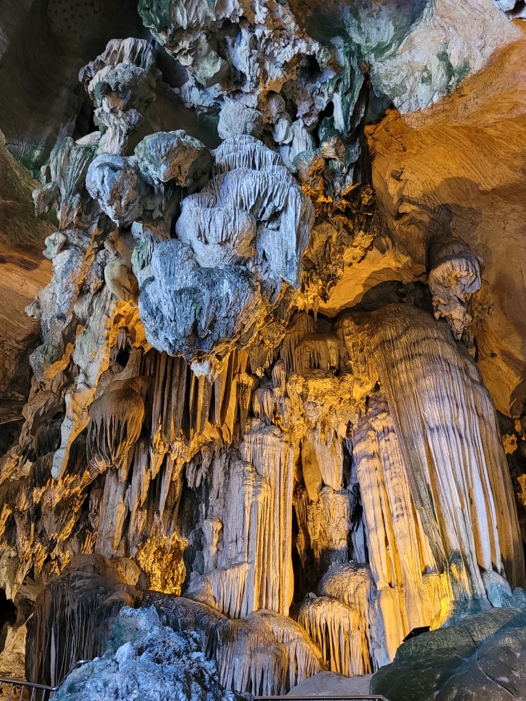 Große Pläne hatten wir für Ipoh nicht. Eine Schmetterlingsfarm in den Bergen war uns zu weit, der Freizeitpark war uns zu teuer und für lange Wanderungen fehlten das Ziel oder der Elan. Wir haben uns für einen Tempel, welcher in eine Tropfsteinhöle gebaut wurde, entschieden. Gute Wahl. Die Anlage ist größer als man glaubt. Über ein paar Stufen gelangt man in das Innere der Höhle, die Tropfsteinformationen sind schön angeleuchtet und hier und da kommt Tageslicht durch Löcher in der Höhle hinein. Auf der Rückseite gibt es einen Durchgang in eine kleine Parkanlage. Es gibt einen Barfußpfad, Tretbote und Mehrpersonen-Fahrräder zu mieten. Die Leihgebühr haben wir uns gespart, da man die Anlage in etwa 10 Minuten (mit kleinen Kindern in 20 Minuten) ausgiebig bestaunt hat. Affen inklusive.