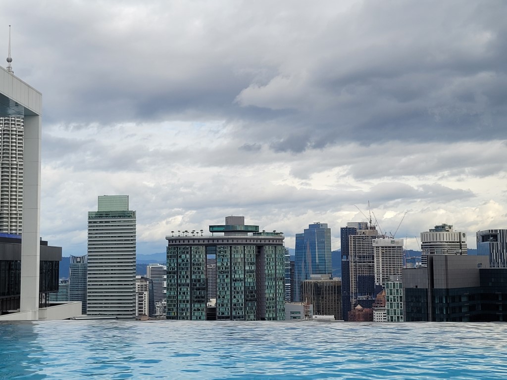 Kuala Lumpur ist ein eigenes Kapitel. Wir mögen diese Stadt! Unsere Unterkunft ist ein Highlight (an Unterkünften) auf unserer Reise. Im Gebäude befindet sich ein gehobenes Hotel, aber auch private Wohnungen werden vermietet. Wir haben ein voll ausgestattetes Appartement – mit Herd -. Das Appartement ist günstiger als ein Hotelzimmer, es hat uns nur niemand das Gepäck aufs Zimmer gebracht. Das können wir verkraften, auch wenn wir ab jetzt mit einem recht unhandlichen Kindersitz durch die Gegend reisen.