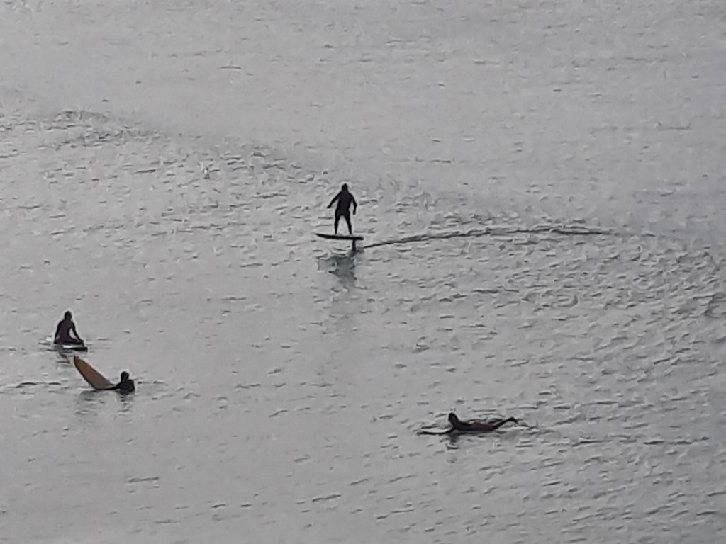 Nachdem mir die Wellen gestern nach „nicht-großartig-genug“ aussahen, wollte ich heute wenigstens Laufen gehen. Der Plan war, schnell vor dem Camper Müsli zu essen und dann gleich zum Strand zu fahren. Ausgerechnet heute hat es geregnet und wir haben das Frühstück doch in die Küche verlagert. Bis alle so weit waren, hat es aufgehört zu regnen.