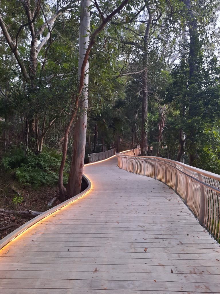 Einmal muss man den Sonnenaufgang auch sehen, somit bin ich extra vor Sonnenaufgang auf die Dachterasse und habe die Ruhe und die Aussicht genossen. Ausserdem war es angenehm frisch. Unser Frühstück aus Resten war super, irgendjemand hat sogar ein fast frisches Glas Nutella abgestellt. Das Zimmer musste leider morgens geräumt werden. Das Gepäck haben wir in Schließfächer gewuchtet und dafür eine kleine Gebühr zahlen müssen (bei dem Übernachtungspreis schon etwas frech). Der Ausflug in den Park war schön, leider zu kurz. Die vielen Kakadus waren eine tolle Attraktion und wir haben mehr Zeit beim Zugucken verbracht, als den Park zu erkunden. Andererseits waren wir vor dem langen Flug nach Singapur nochmal zu Fuß unterwegs.