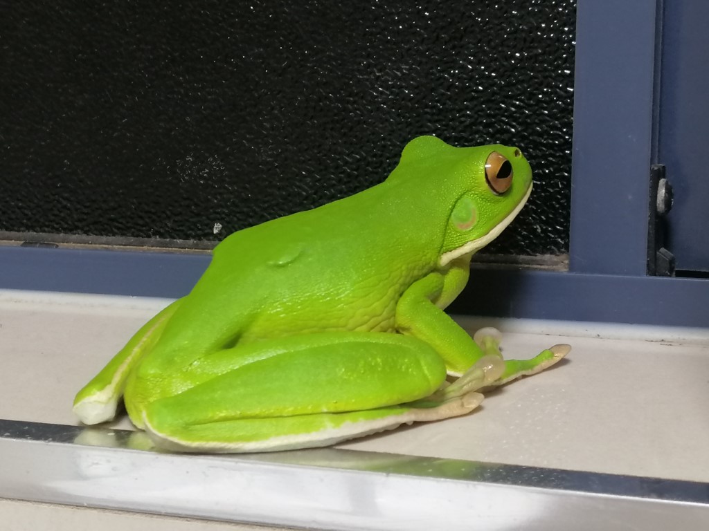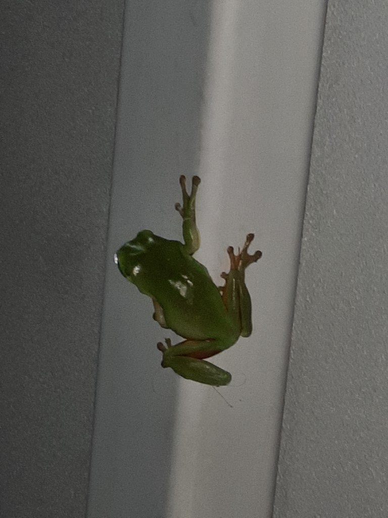 Direkt vor dem Bad saß ein knallgrüner Frosch, den mussten wir natürlich beobachten. Eine Mutter hat sich mit ihrer Tochter auch dazugesellt, und wir kamen ins Gespräch. Die ältere Tochter ist auch schon in der Grundschule, und sie hat gleich etwas deutsch geübt, Spielen klappt aber auch mit Händen und Füßen gut.