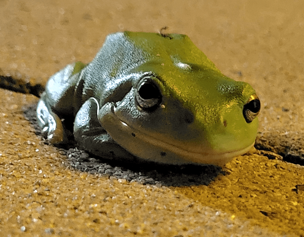 Zum zweiten Mal am Campingplatz angekommen, sind wir ohne Umwge in den Pool bis der Hunger so groß war, dass wir raus mussten. Die Kinder konnten neben der Küche den Outdoorfilm gucken (heute lief Mulan), Rio hat Stühle durch die große Küche geschoben, Steffen hat gekocht und ich habe aufgepasst, dass niemand von einem Krokodil gegessen wird;-). Rio hat viele mini kleine Frösche entdeckt und ist überall auf Erkundungstour gegangen.
