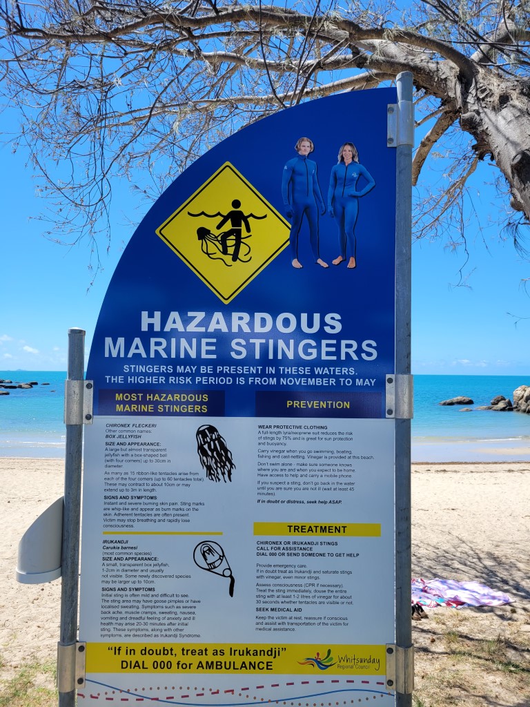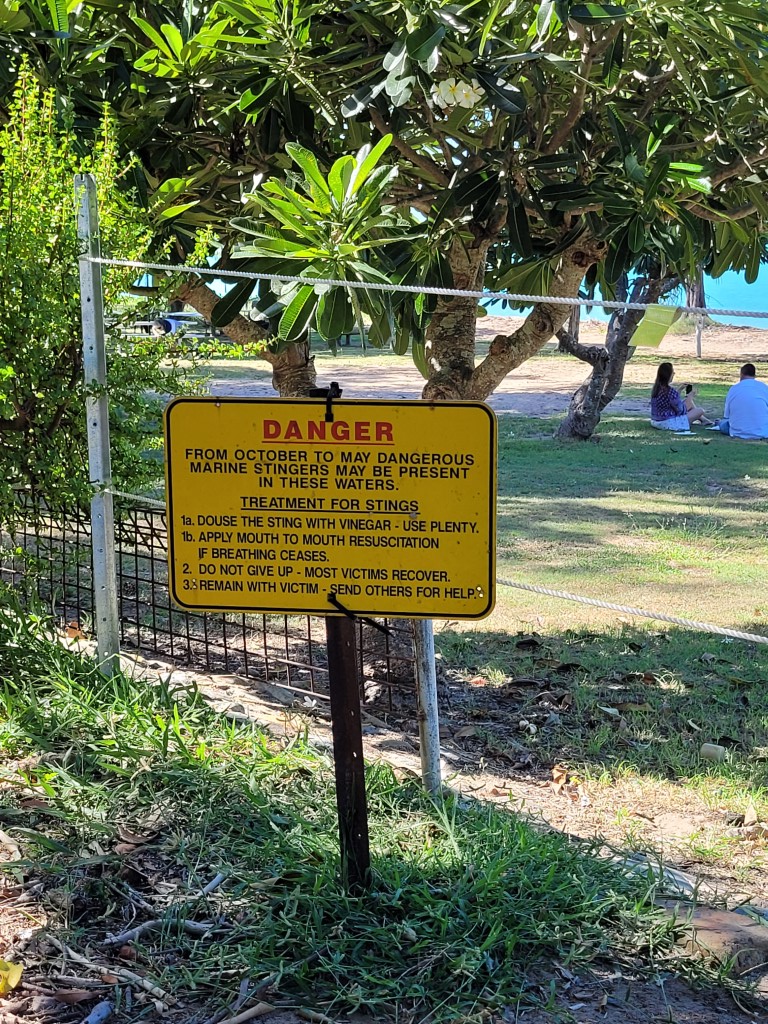 Am Morgen haben wir uns länger mit einem australischen Paar unterhalten, welches uns vor den Sandflöhen in Tin Can Bay und Rainbow Beach gewarnt hat. Die Dame hat mir gleich zwei Cremes und ein Medikament genannt, damit wir gut gerüstet sind. Es hat sich jedenfalls so angehört, als wollte man dort keinen Fuß aus dem Auto setzen, ohne komplett mit Chemie eingesprüht zu sein.
