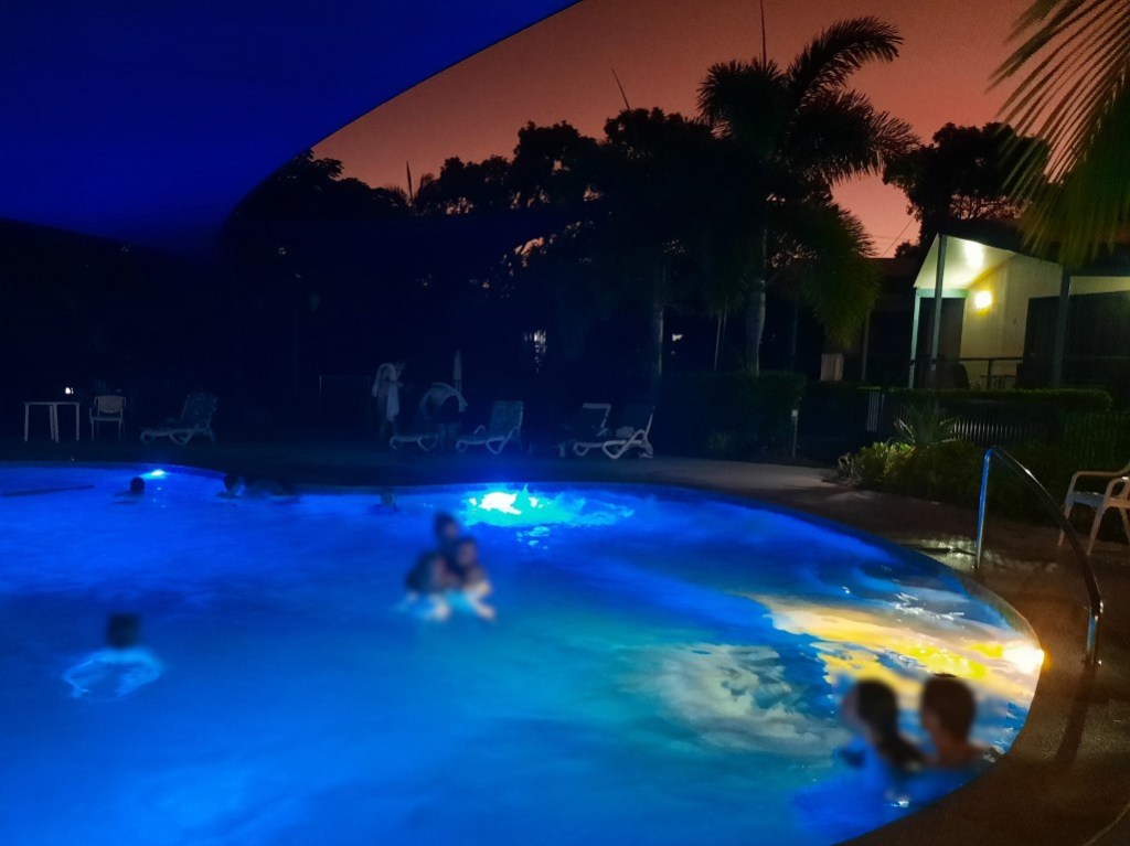 Zurück am Campingplatz sind wir geradewegs in den Pool, um die Mosquitozeit möglichst unbeschadet zu überstehen. Ausserdem hatten wir vor, einmal die letzten Badegäste zu sein, die Chancen standen heute sehr gut. Kurz bevor wir das Wasser verlassen haben, kamen doch nochmal zwei Mädels zum Rutschen. Zumindest wurden wir wirklich nicht zu viel gestochen, aber wir kämpfen noch mit den Bissen aus Yeppoon und Townsville.