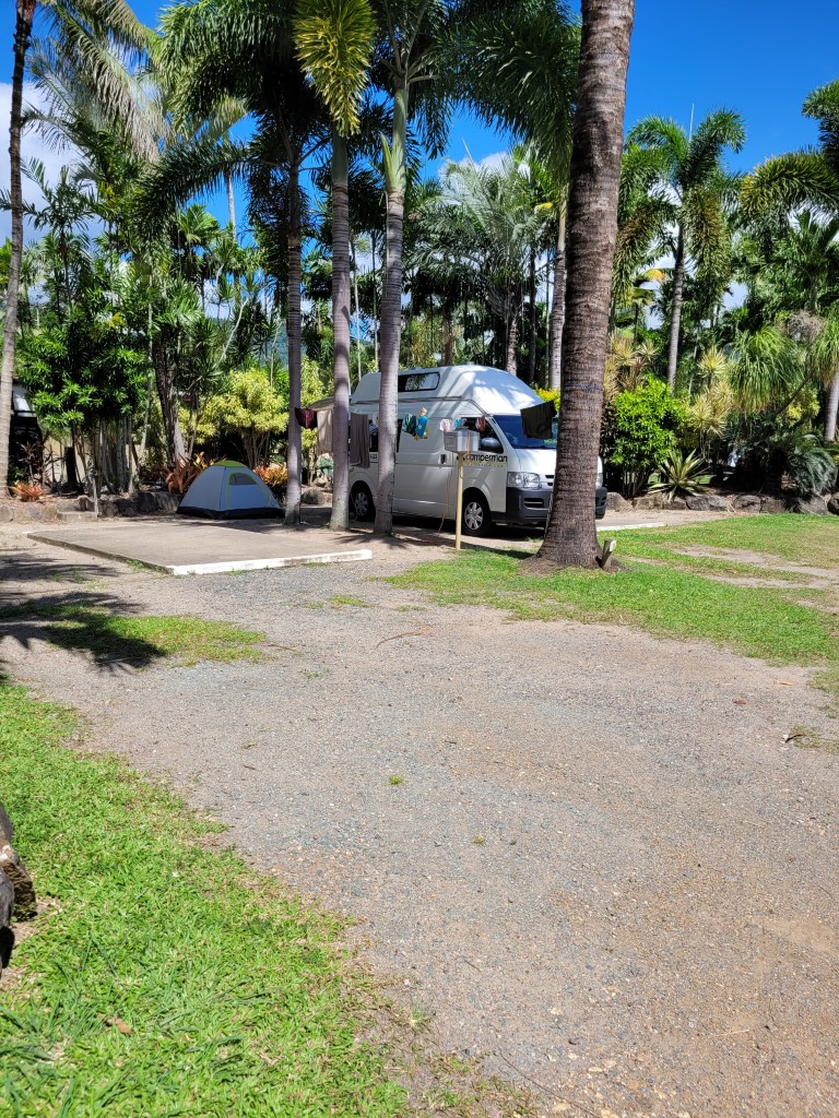 Die Hitze in der Nacht war unfassbar, die Türen kann man wegen der Stechmücken nicht offen lassen. Die Abreise fiel uns somit nicht schwer. In Rollingstone angekommen, wollten wir noch Lebensmittel für das Wochenende besorgen. Unser Stellplatz ist super, aber wir haben nicht damit gerechnet, dass wir entweder zurück nach Townsville fahren müssen oder nach Ingham, was auch 45 Minuten Autofahrt entfernt ist. „Is there a supermarket here?“ – „Oh yeah Honey, just one hour down the road“. In Ingham haben wir zumindest alles bekommen, bis auf den Kaffee, den wir leider, leider vergessen haben.