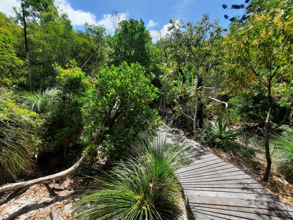 Die Kinder waren fit und haben sich den ganzen Weg unterhalten. Auch beim zweiten Mal Ausschauhalten haben wir keine Delfine oder Koalas gesehen. Viele viele Papageien, ein paar Schmetterlinge und eine unauffällige größere Spinne gab es statdessen zu sehen.