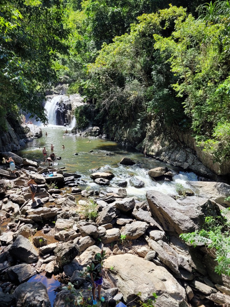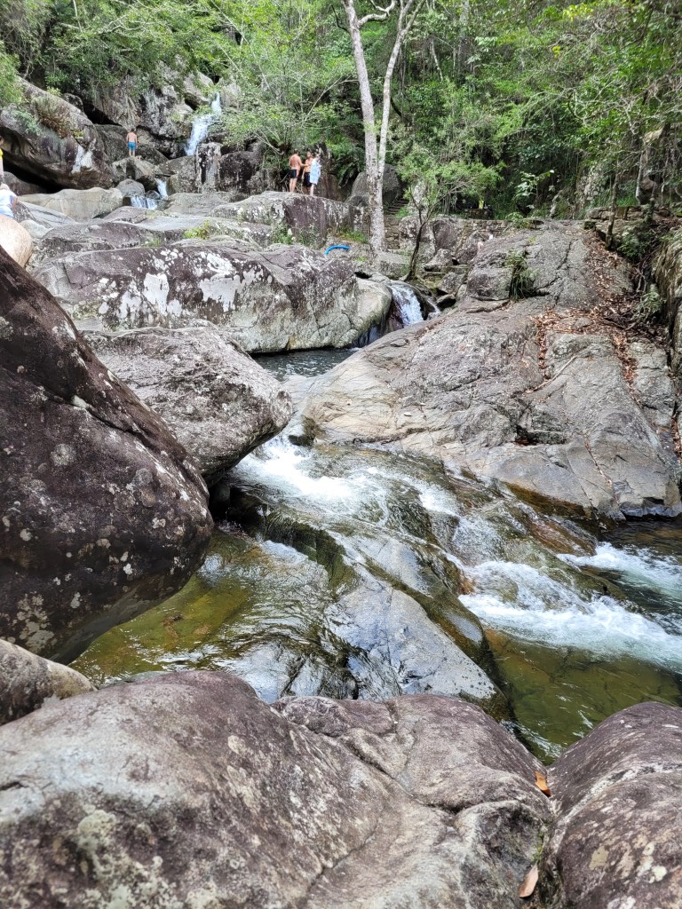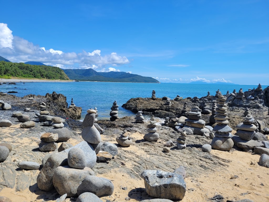 Die Strecke zwischen Port Douglas und Cairns ist eine der schönsten Routen, die man fahren kann. Wir haben uns Zeit genommen und sind mit mehreren Stopps z.B. um Steine zu stapeln oder die Füße am Ellis Beach „abzukühlen“ und ein Eis zu essen Richtung Cairns gefahren. An den Crystal Cascades war geplant, baden zu gehen, weil das Wasser etwas kühler ist, als das Meer. Der Weg zu der „Badestelle“ ist 1,2 km lang und führt am Fluss und vielen kleineren Wasserfällen vorbei. Zum Baden war der Fluss nicht gut geeignet, da gab es in den Tagen zuvor viel bessere Stellen.