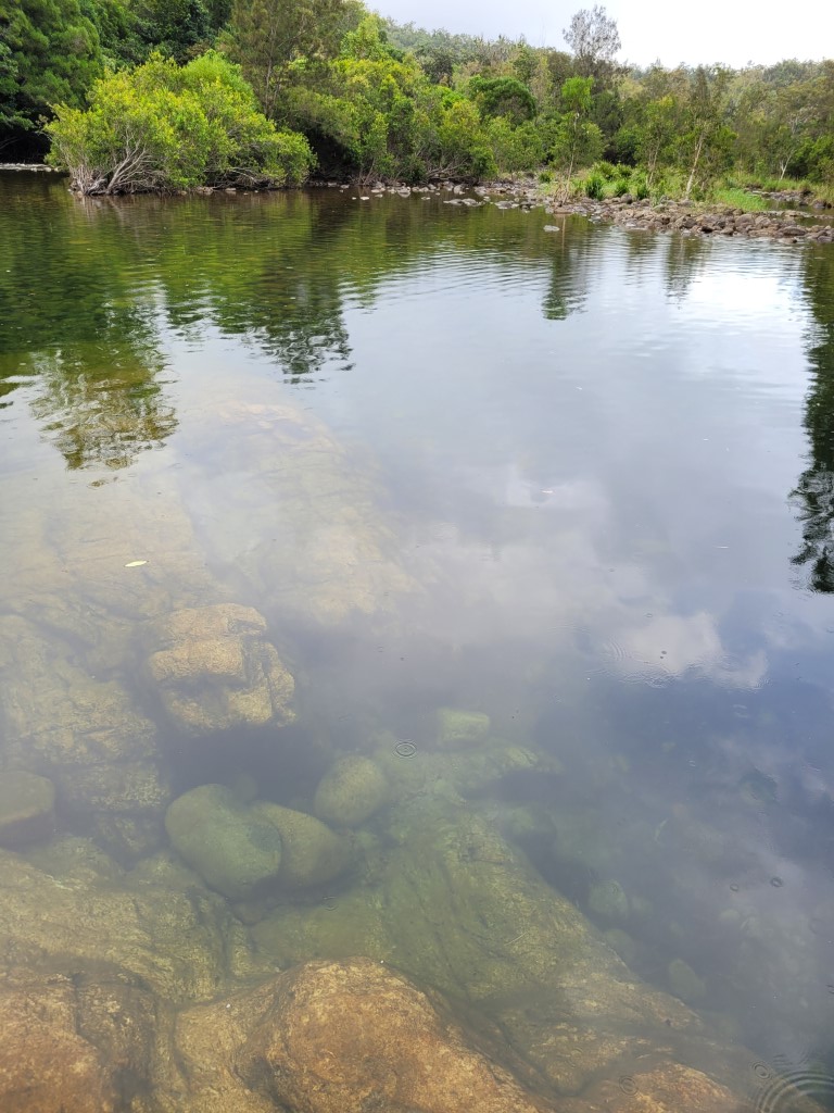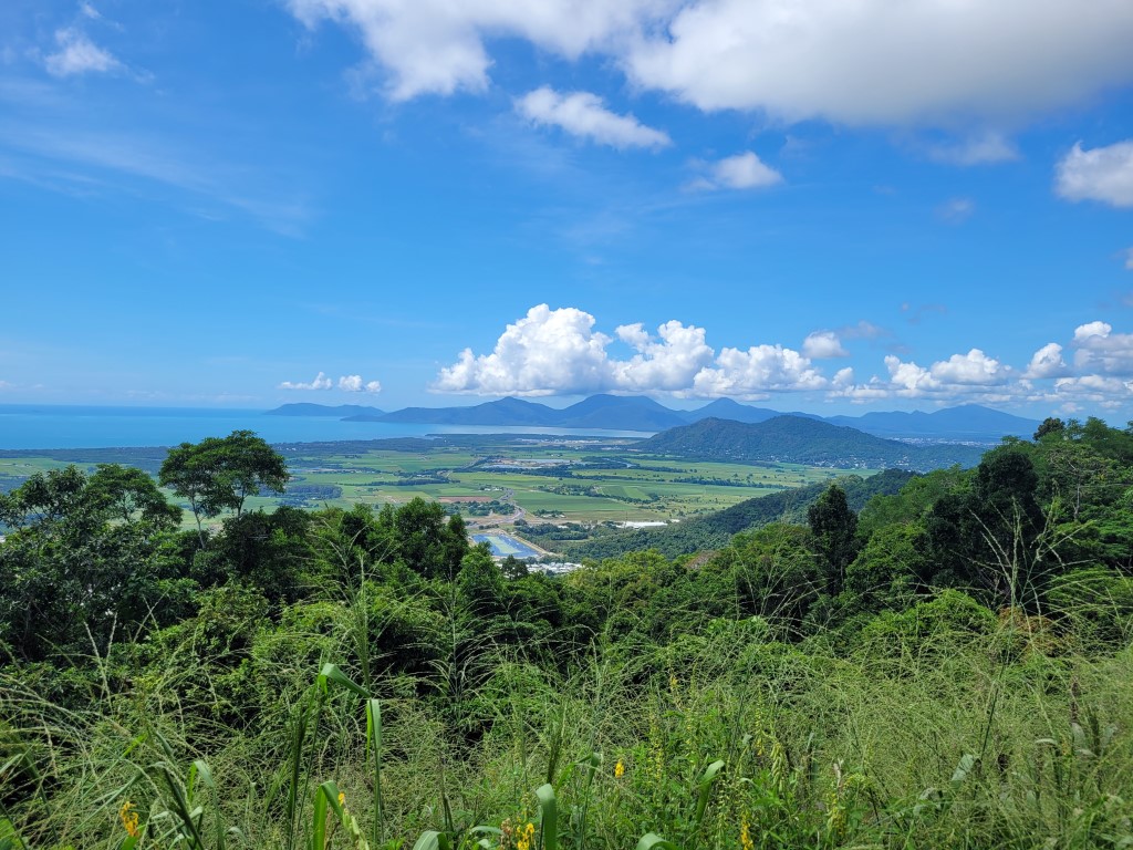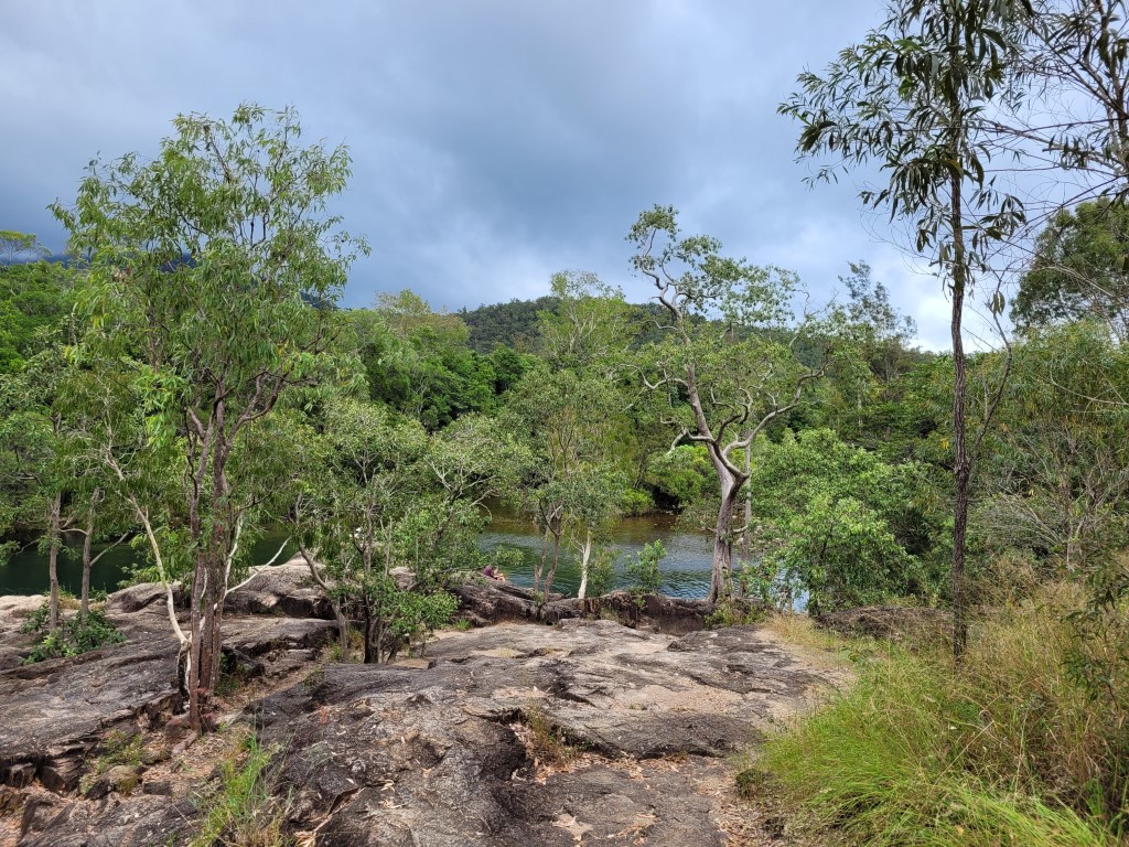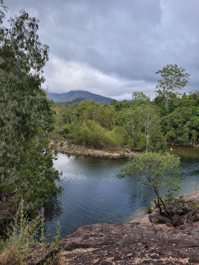 Der Tag startete zwar warm, aber bewölkt. Nachdem wir startklar waren sind wir an einem Straßenverkauf von Frosty Mango vorbei und haben Mudcake und Eis gegessen. Im Anschluss sind wir zunächst zum Little Crystal Creek gefahren. Das Wasser ist tatsächlich kristallklar und man kann sich gut abkühlen, oder nur die Kulisse genießen. Wir haben nicht sehr lange dort verbracht, weil wir der Straße noch etwas weiter nach oben folgen wollten. Wir kamen irgendwann in Paluma an, einem sehr hübschen kleinen Ort. Hier oben ziehen die Nebelschwaden kontinuierlich durch, alles ist üppig grün und die Temperaturen sind sehr angenehm. Es gibt einen kleinen Kletterpark, einen Kajakverleih, einen Spielplatz und viele hübsche Vorgärten, aber keine Menschenseele war zu sehen. Mit dem Nebel dazu fühlte es sich wirklich etwas wie in einerm Geisterdorf an.