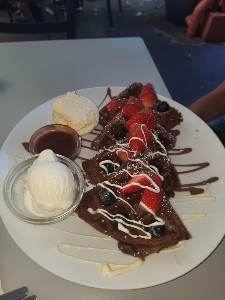 Den Tag haben wir zum großen Teil in der Stadt an der Lagune verbracht. Die Badelagune liegt direkt am Strand und auf der anderen Seite befindet sich die Flaniermeile mit Restaurants und Geschäften. Ich war ohne Familie eine Weile flanieren und bin mit kalten Getränken zurück zur Lagune gekommen. Das tat mal gut!