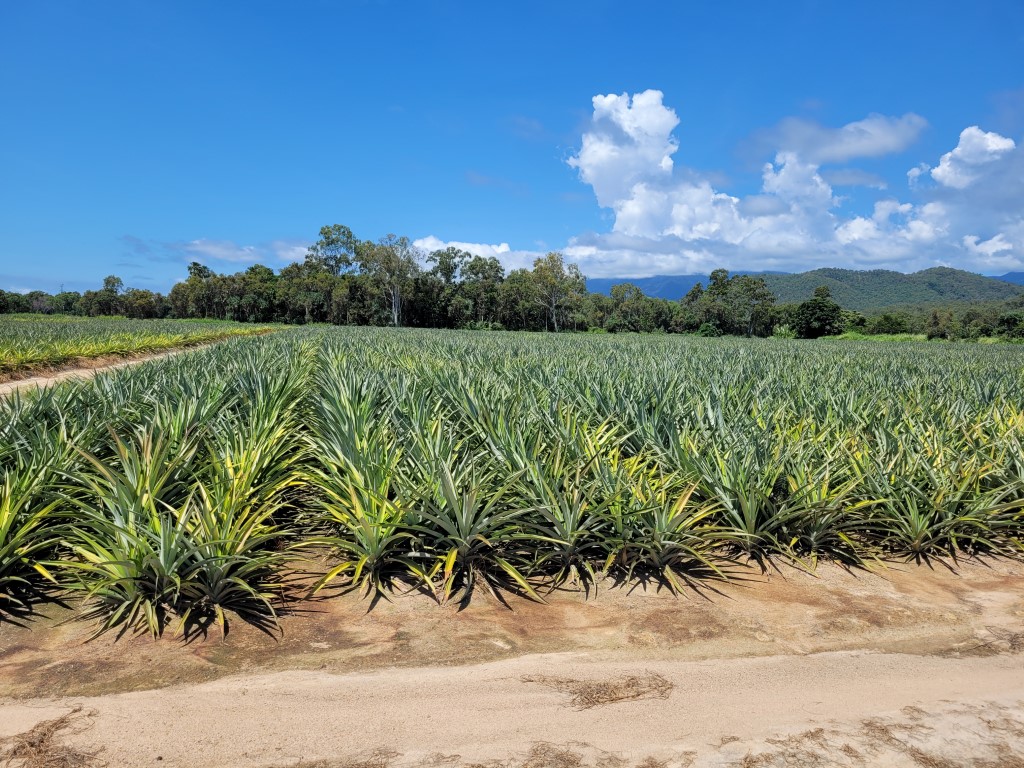 Wir sind zu den Wallerman Falls aufgebrochen und haben sogar vorher daran gedacht die Chipkarte für die Schranke, welche sowieso dauerhaft offen stand, an der Rezeption abzugeben. Nach den Ananasfeldern fiel Steffen noch ein, dass die Wäsche noch im Trockner war und wir nochmal umkehren mussten.