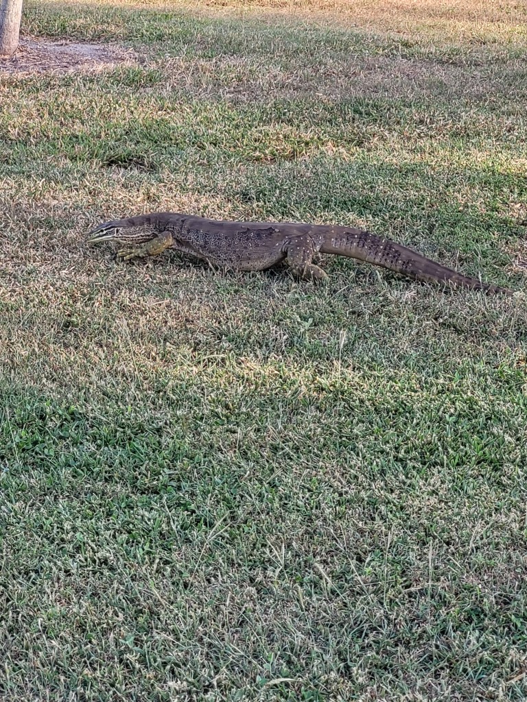 Am nächsten Morgen hatten wir mit dem Campwart ein sehr nettes Gespräch. Er war sehr interessiert an unserer Heimat. Er hat uns noch einen Ausflugtipp gegeben und meinte, dass es schon arg kalt in den Bergen wäre. Gemeint hat er einen Temperatursturz von 3-4 Grad. Wir mussten beide lachen, aber er meinte für ihn wäre das wie Winter. Vor lauter Quatschen kamen wir später los als gedacht (im Übrigen weit nach Checkout-Time, damit nimmt es hier zum Glück niemand genau). Es lagen nur 150 Kilometer vor uns und auf der Fahrt gabe es ausnahmsweise etwas spannendes. Immer wenn wir über Brücken fahren, werde ich gefragt ob ich ein Krokodil gesehen habe. JA! Ein sehr großes sogar. Leider waren wir auf einer Schnellstraße und konnten nicht einfach rückwärts fahren, um das Kroko von der Brücke aus zu beobachten.