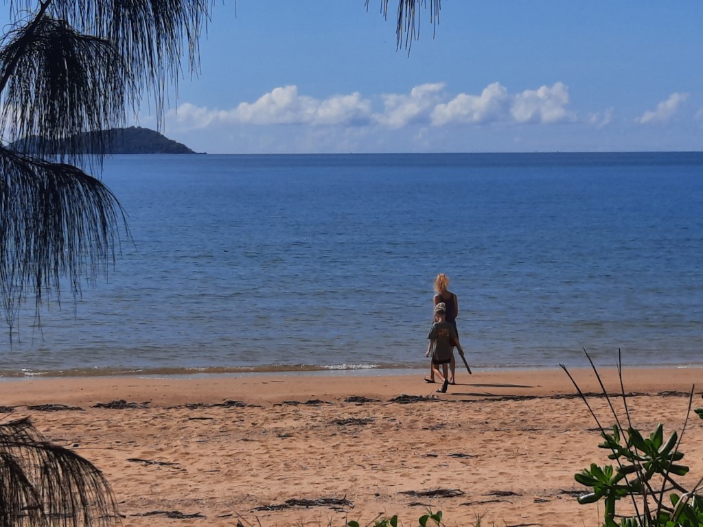 Leider war die Mücken-Hightime noch im vollen Gange, als wir zurück kamen. Im Dunkeln habe ich versucht, so viel wir möglich vom Bett aufzubauen, aber die Hitze im Camper ist kaum auszuhalten. Zwei oder drei Mücken haben es trotzdem ins Innere geschafft und mich zerstochen. Die Großen waren im Open-Air Kino, dort lief „Toy Story“. Da Rio das Essen verschlafen hatte, war er jetzt hungrig und wir mussten doch nochmal in die Küche gehen. Zum Einschlafen haben wir den Kleinen ins Zelt gelegt. Steffen hat gearbeitet und wir haben noch einen Anbieter herausgesucht, um auf die Whitesundays zu fahren. Gar nicht so einfach! Wir haben uns für eine Tour mit nur einem Schnorchelspot und etwas mehr Strandzeit entschieden, damit auch Rio was vom Ausflug hat. Das Essen müssen wir an dem Tag selber mitbringen, das hat uns aber gleich 100 Dollar gespart. Wir wären sehr gerne mit einem Seegelboot unterwegs gewesen, aber das war leider viel zu teuer, außerdem ist die Tour kaum an einem Tag zu schaffen. Wir haben dann später die Segler gesehen, die unter Motor gefahren sind.
