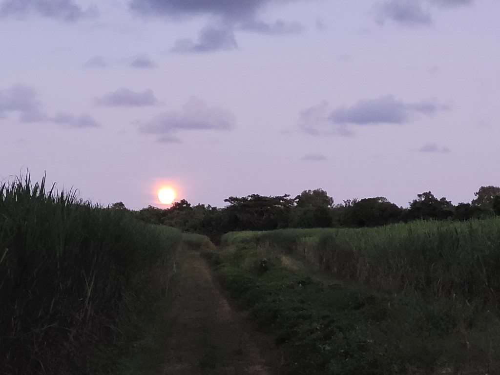 In der Ferne, hinter den Bergen sieht man den ganzen Abend Blitze am Himmel und der Mond stand eben orange und riesengroß über den Palmen. Wir werden gleich ein wenig recherchieren, was wir in Thailands Süden sehen und wo wir unterkommen wollen.