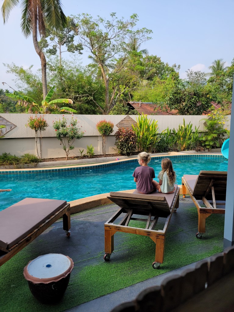 Die Unterkunft war sehr hübsch und sauber. Am nächsten Morgen sind wir noch kurz im Pool gewesen, bevor es zur Fähre in Richtung Koh Phangan ging.